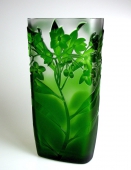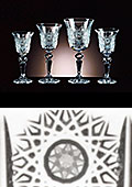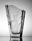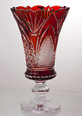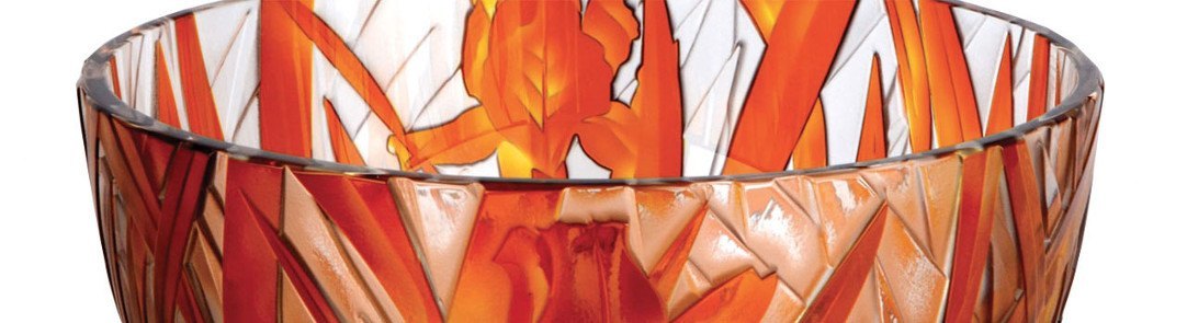 Except of clear crystal, we carry colored, so-called “cased” cut crystal and also hand-painted, gilded crystal further decorated by raised High Enamel flower paint. All painting is done by 18 karat gold and porcelain powder.