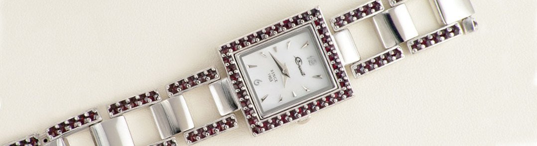 It includes bracelets, necklaces, brooches, pendants, earrings watches and rings. Czech garnet is unique due to its nice, fiery red color and excellent light refraction. Our garnets come with the Certificate of genuine Czech jewel and bears G or G1 mark. Our garnets are produced either in 14Kt Gold plated sterling Silver, or Silver coated with Rhodium. (Rhodium protects the Silver).