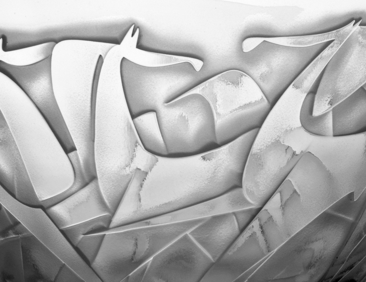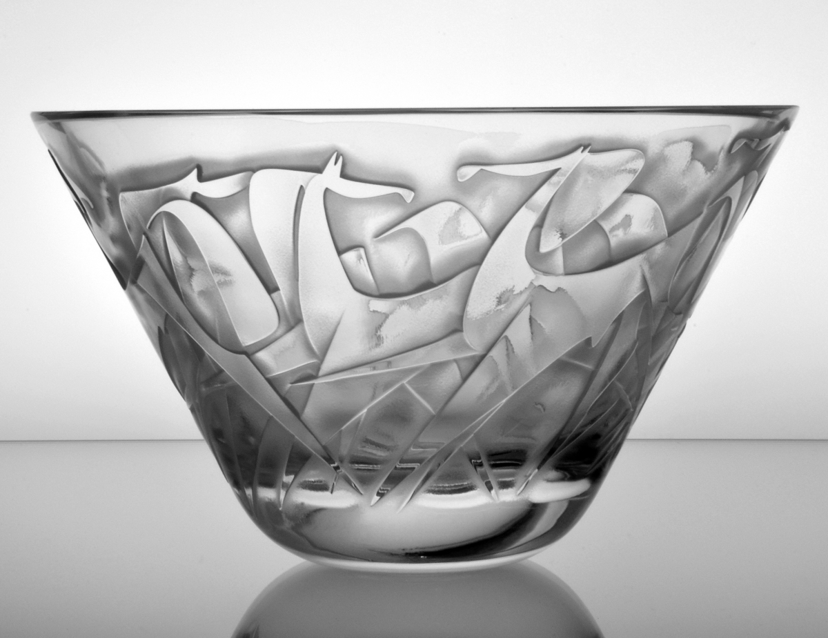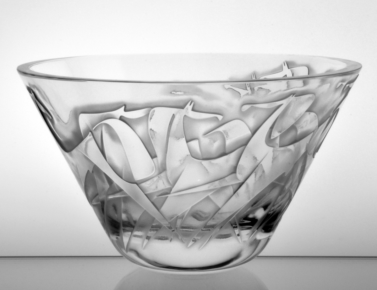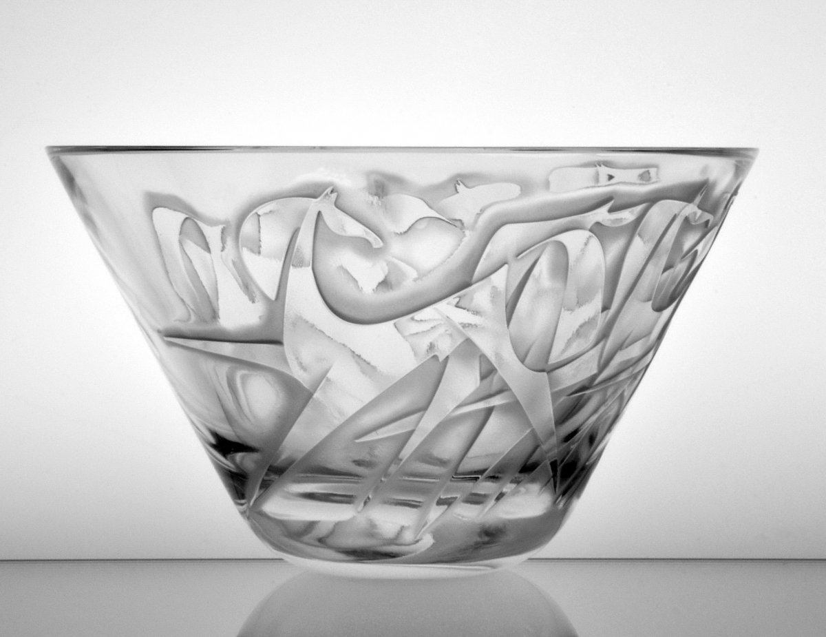 Conical bowl featuring beautiful sanblasted composition of running horses. Limited Bohemia crystalite series.