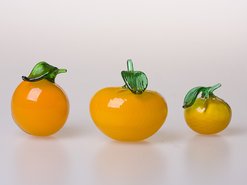 Foukane, rucne tvarovane hutni ovoce a zelenina k dekoraci.
