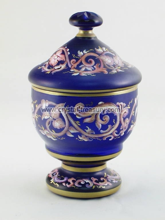 Doza kobaltova modr, malovana zlatem.