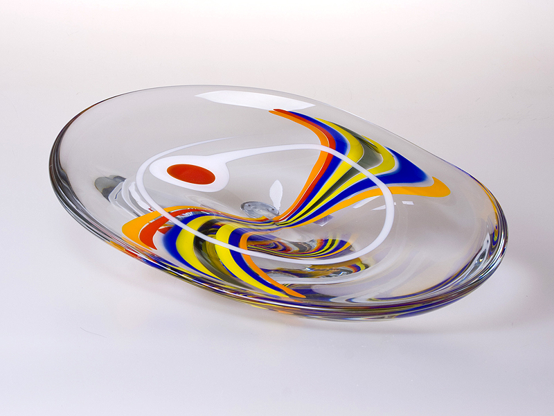 Hutne zdobena ovalna misa. Ceske sklo, rucne nabirane a tvarovane.