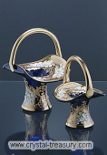 Překrásné, dekorativní košíky z českého skla, ručně dekorované zlatem a vysokým smaltem. K dispozici ve dvou velikostech a třech barvách - zelené, červené a populární modré.