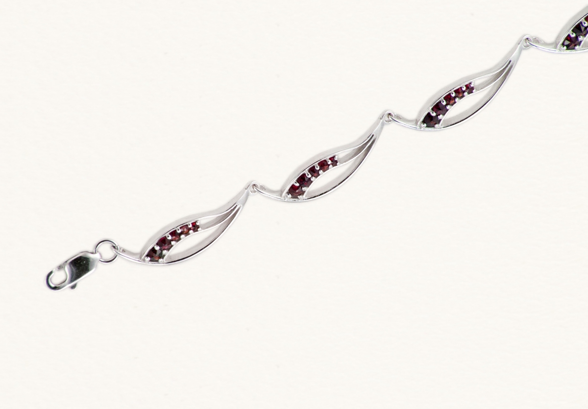 Stříbrný náramek z českého granátu. K dispozici také v pozlacené verzi.
