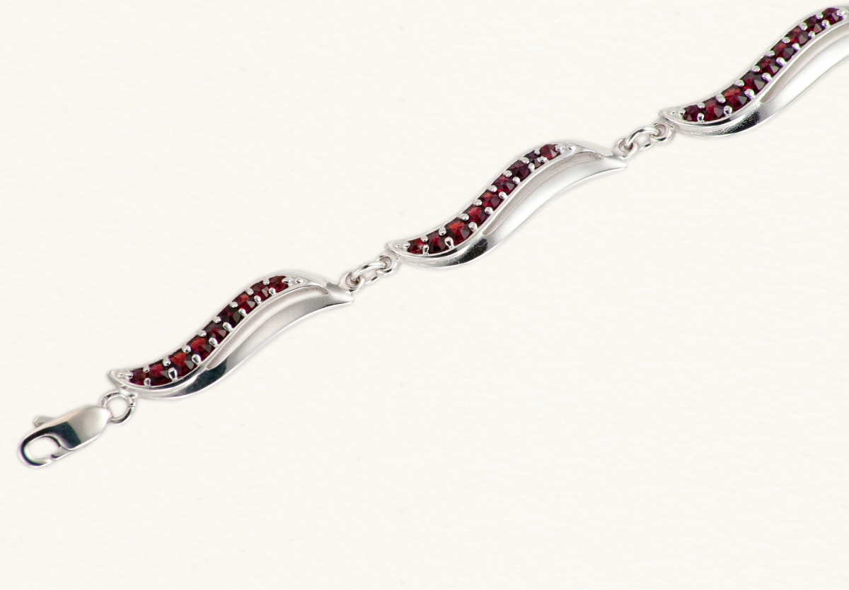 Stříbrný náramek z českého granátu. K dispozici také v pozlacené verzi.