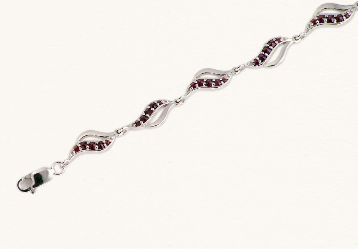 Stříbrný náramek z českého granátu. K dispozici také v pozlacené verzi.