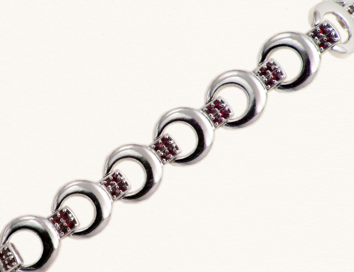 Stříbrný náramek z českého granátu. K dispozici také v pozlacené verzi.
