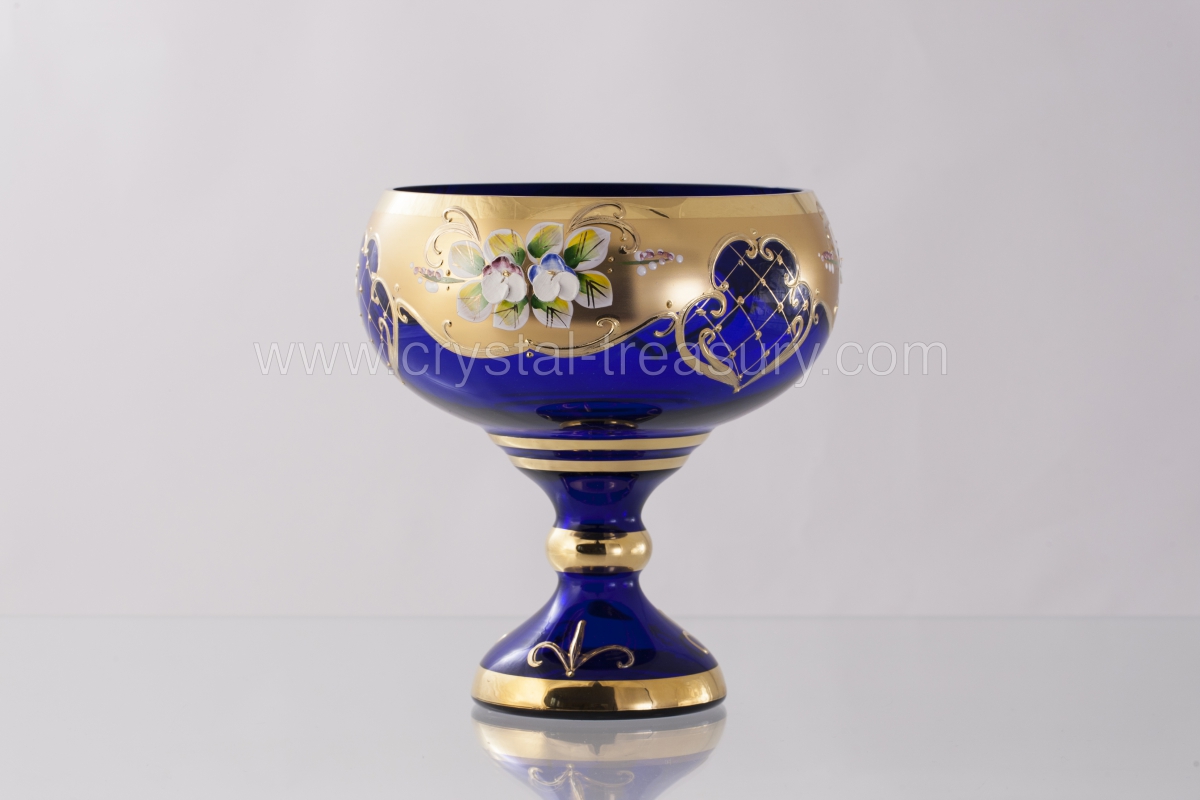 Hutní nástolec z barevné skloviny, ručně dekorovaný vysokým smaltem a zlatem s matným přetahem.