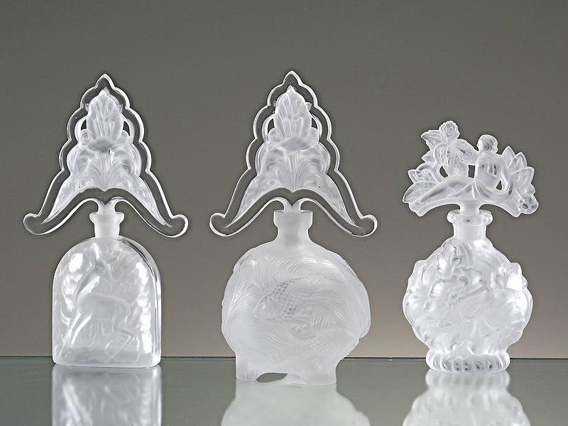 Lahvicka na parfem ve stylu Art Deco. Rucne nabirany olovnaty kristal, lisovany.