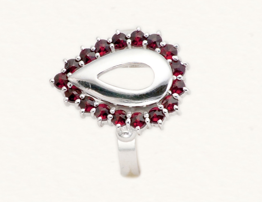 Vyberte si vhodnou velikost prstýnku dle obvodu příslušného prstu. Granátové prsteny jsou nabízeny ve stříbrné nebo pozlacené verzi. Stříbrná verze je dále chráněna neviditelnou vrstvou Rhodia. Z toho důvodu je cean za obě verze shodná.