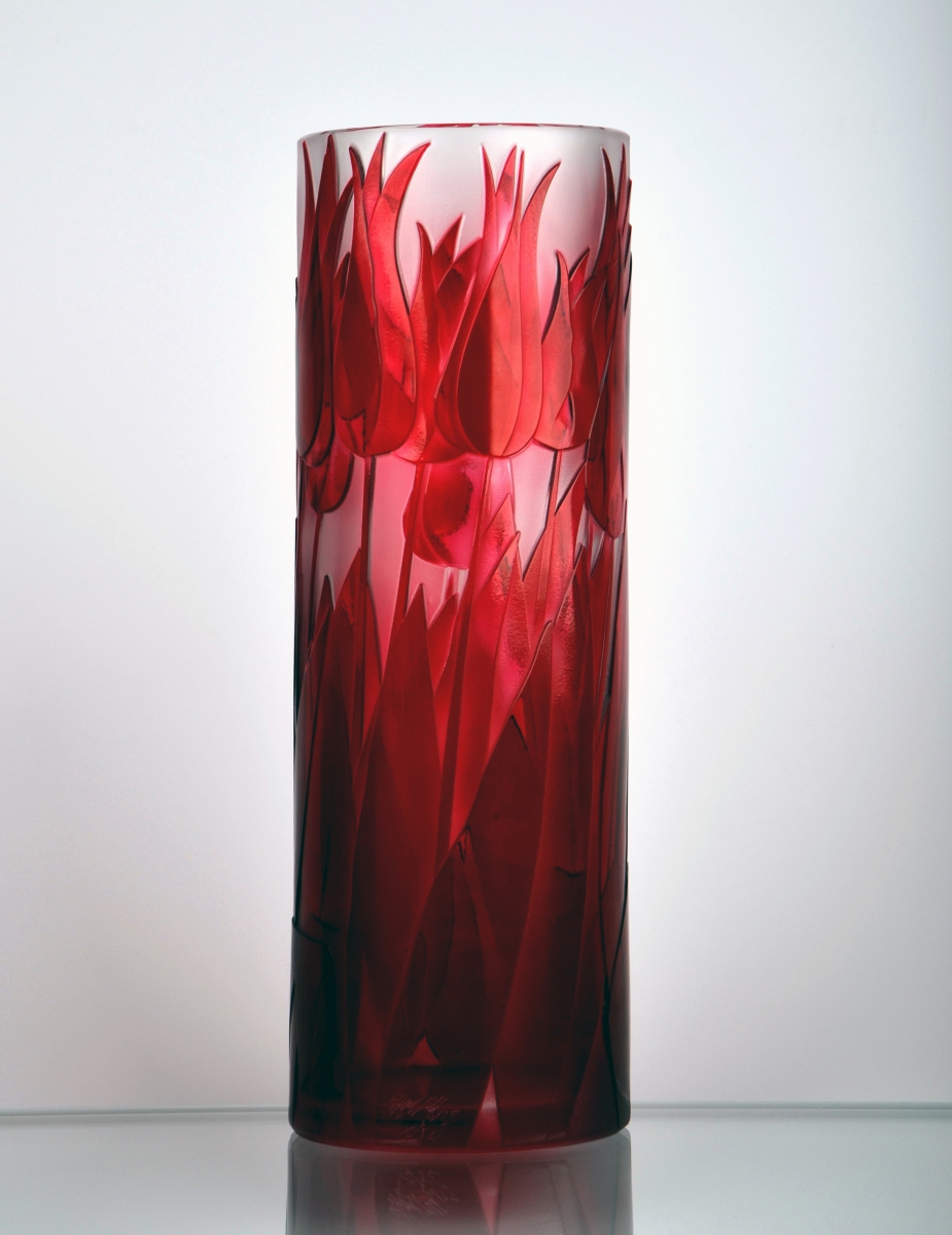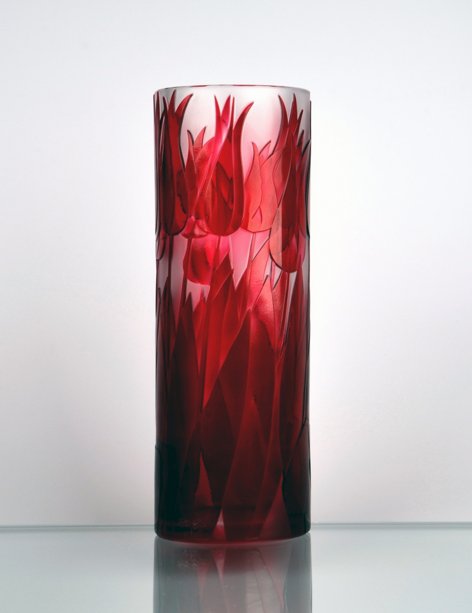 Nádherné linie tulipánu přímo vybízejí ke stylizaci v kombinaci přejímaného křišťálu a hlubokého pískování. Váza z limitované kolekce v provedení přejímaný křišťál.