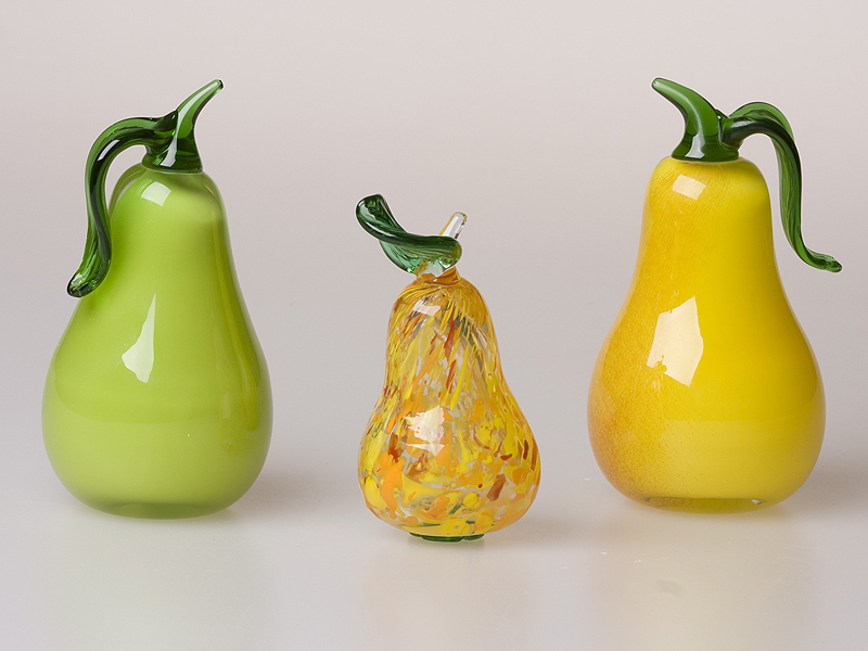 Foukane, rucne tvarovane hutni ovoce a zelenina k dekoraci.