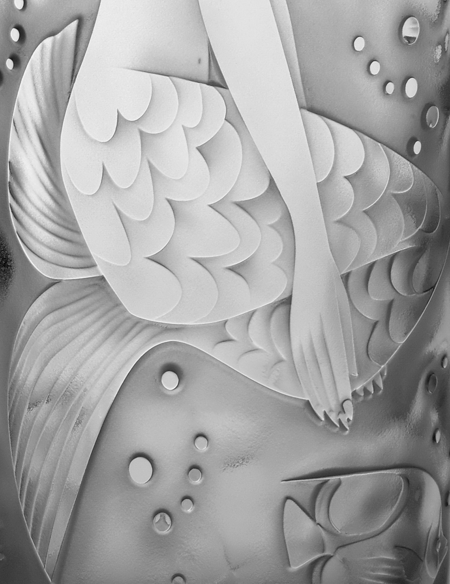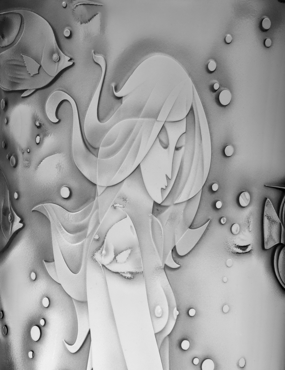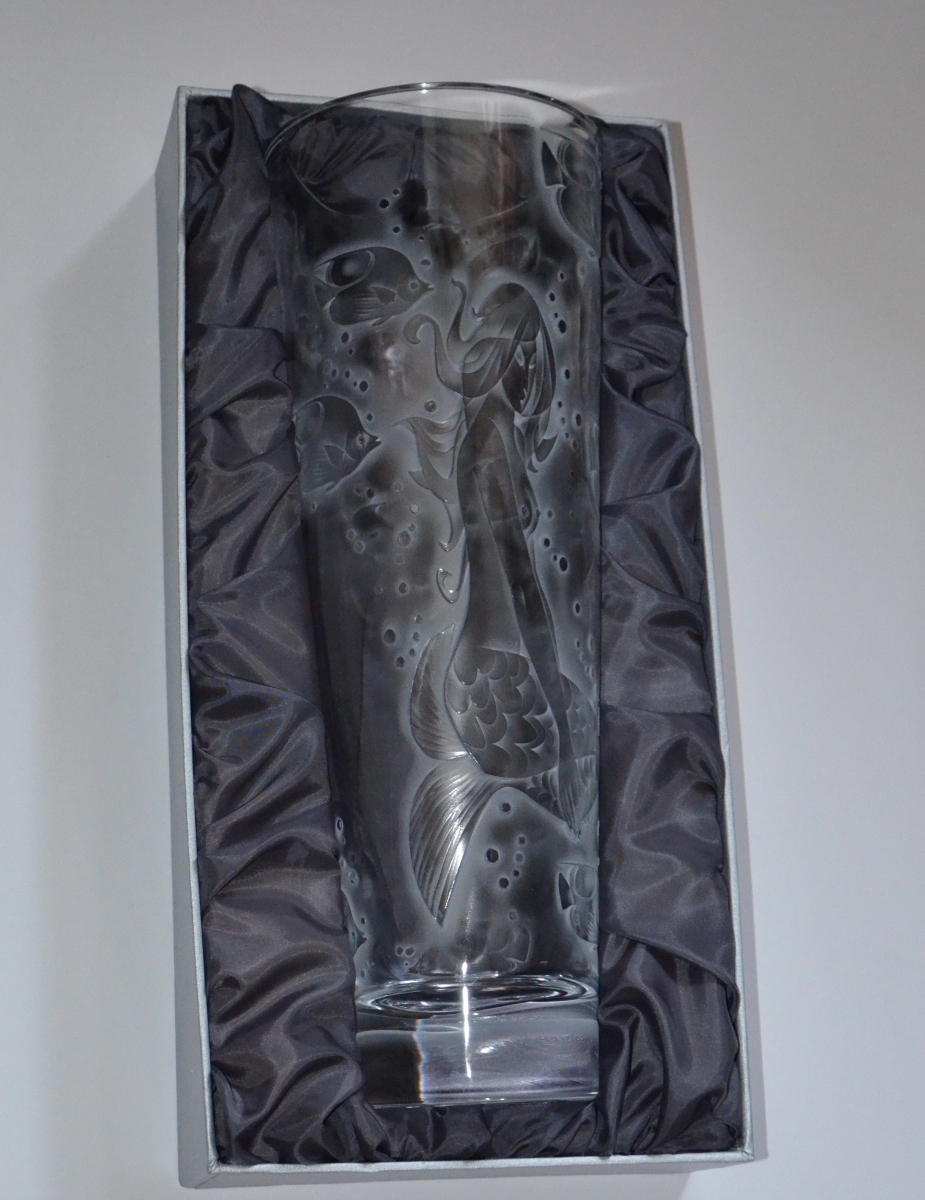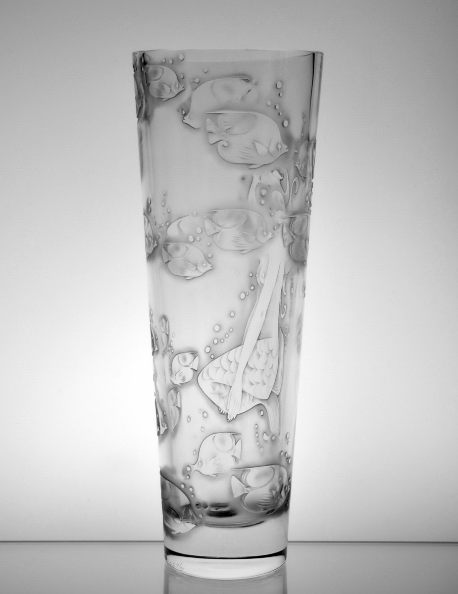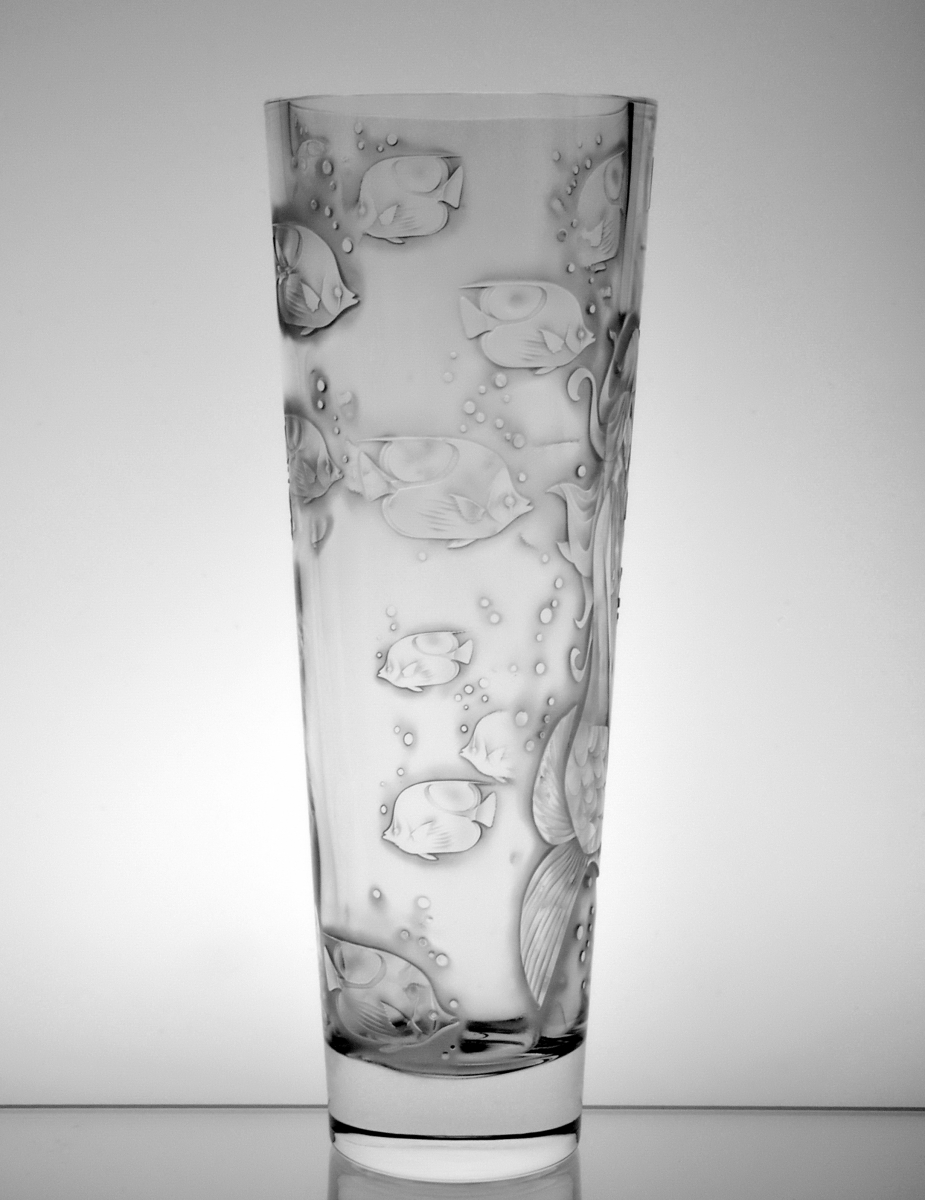 Crystal vase decorated with sandblasted mythological composition of woman's body and beautiful underwater world. Limited crystal series.