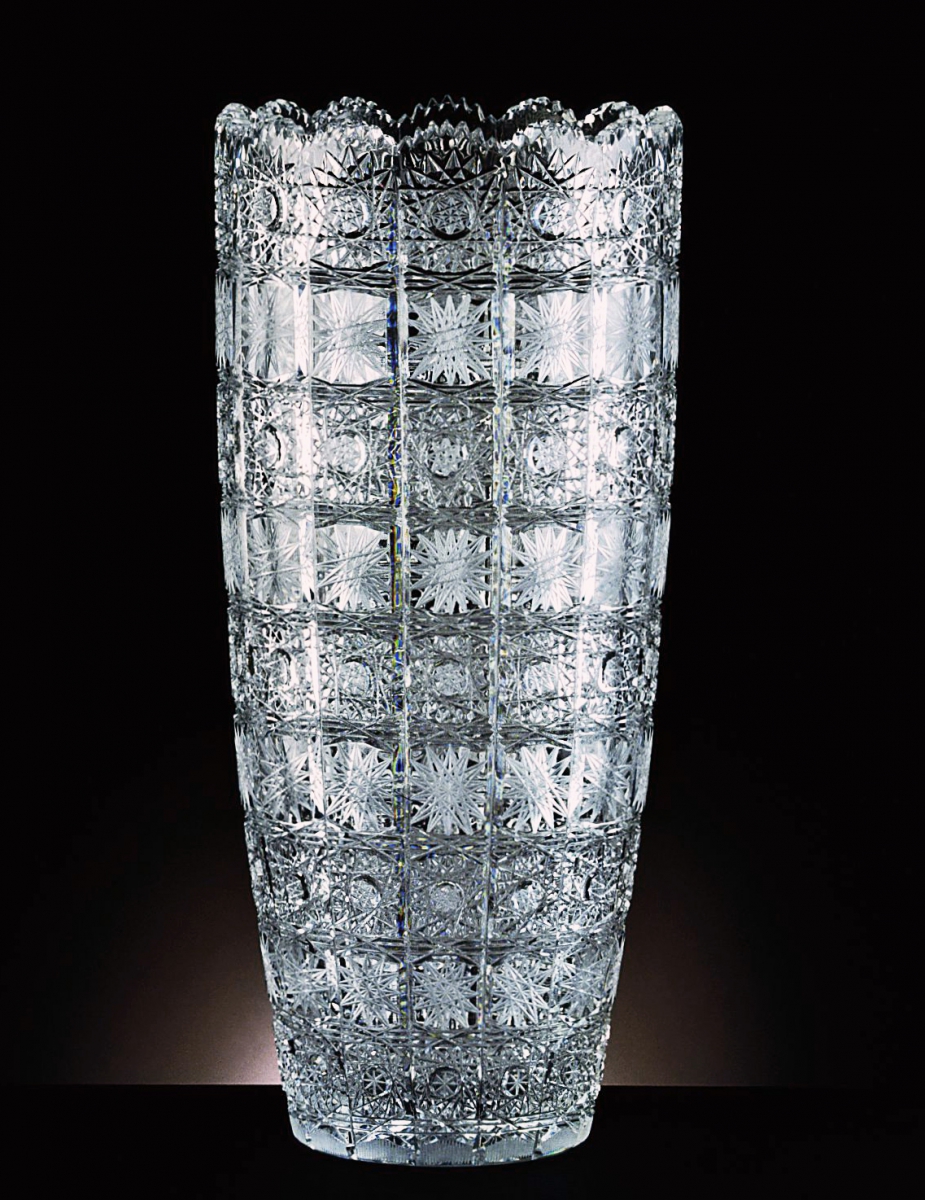 We offer it in 6 different sizes, with the largest having a respectable height 410 mm. However, even this big vase is mouth blown and hand cut – simply the honest work of the most skilled Czech glassmakers.