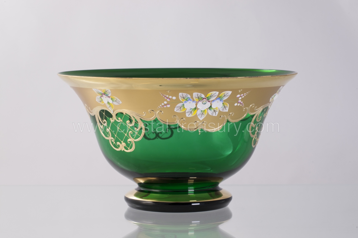 Colored glass bowl, hand-made and decorated with gold and high enamel. Manufactured in Bohemia, Czech Republic.