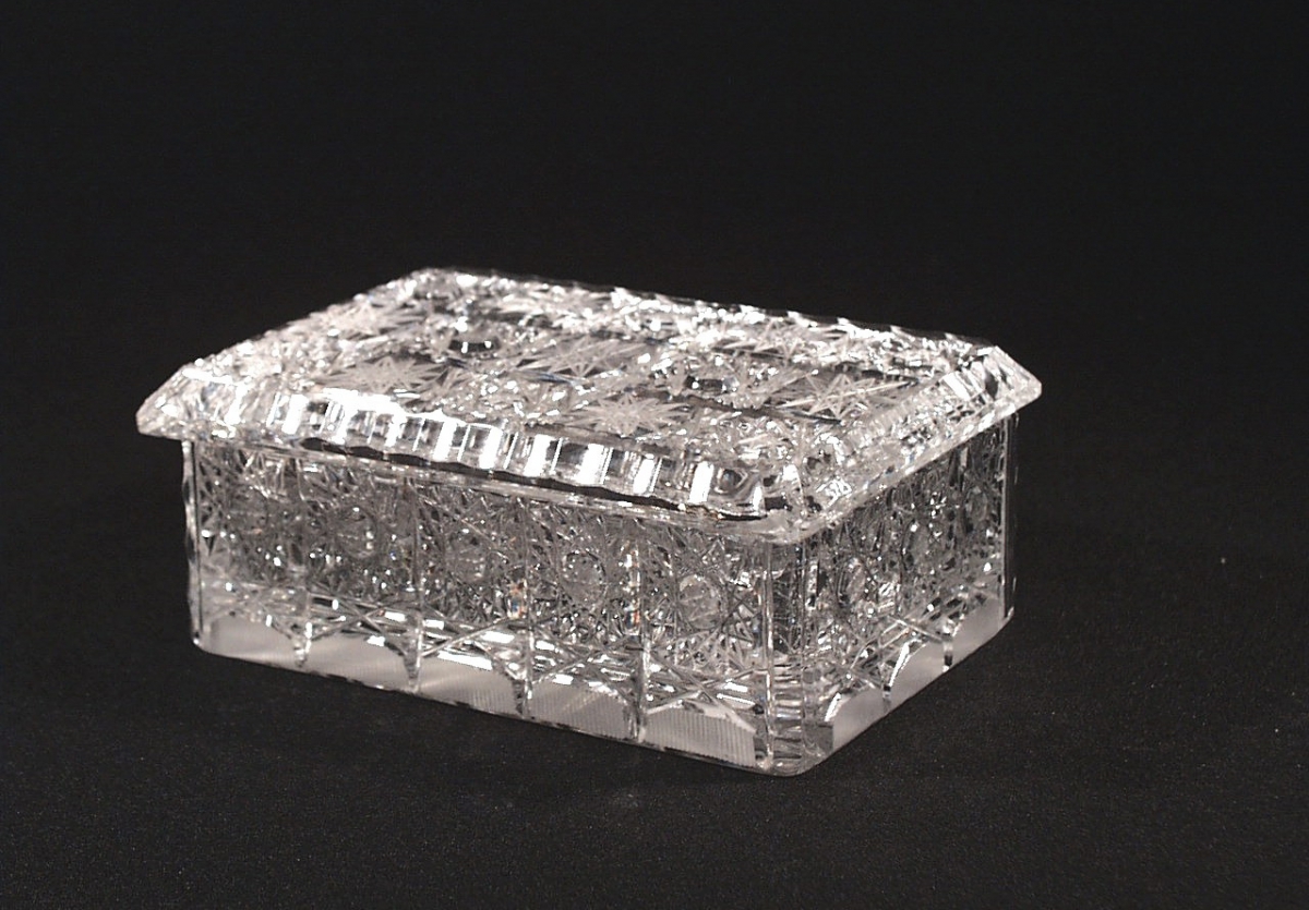 Regular rectangular box of hand-cut Czech crystal in the past century formed an important part of every coffee table as a box for all sorts of decorations or candies. It is perfectly useful for jewellery as well.