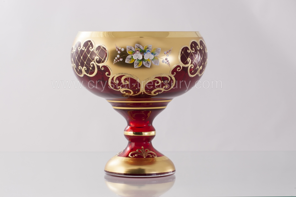 Footed bowl Classic. Hand-made from hot-shaped, colored glass, hand-painted with gold and high enamel paint. Made exclusively in the Czech Republic. Height: 20cm (7.87")