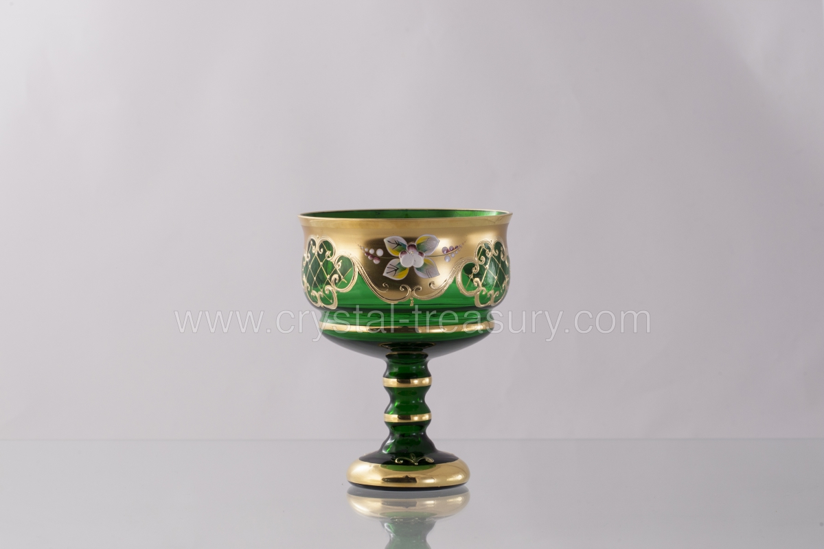 Footed bowl Bohemia. Hand-made from hot-shaped, colored glass, hand-painted with gold and high enamel paint. Made exclusively in the Czech Republic. Height is 15 cm / 5.90".