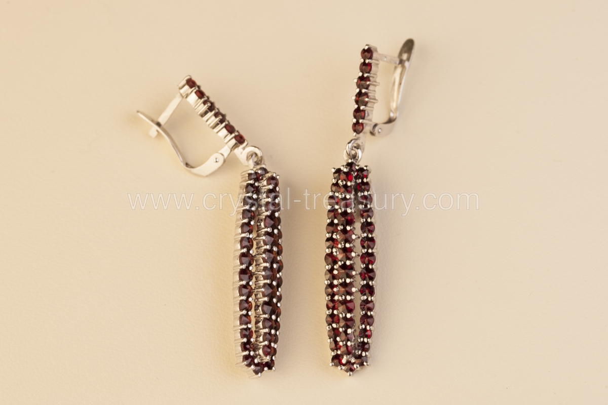 3,2 cm long earring with a few lines of small garnet stones. Traditional Czech garnet jewelry.