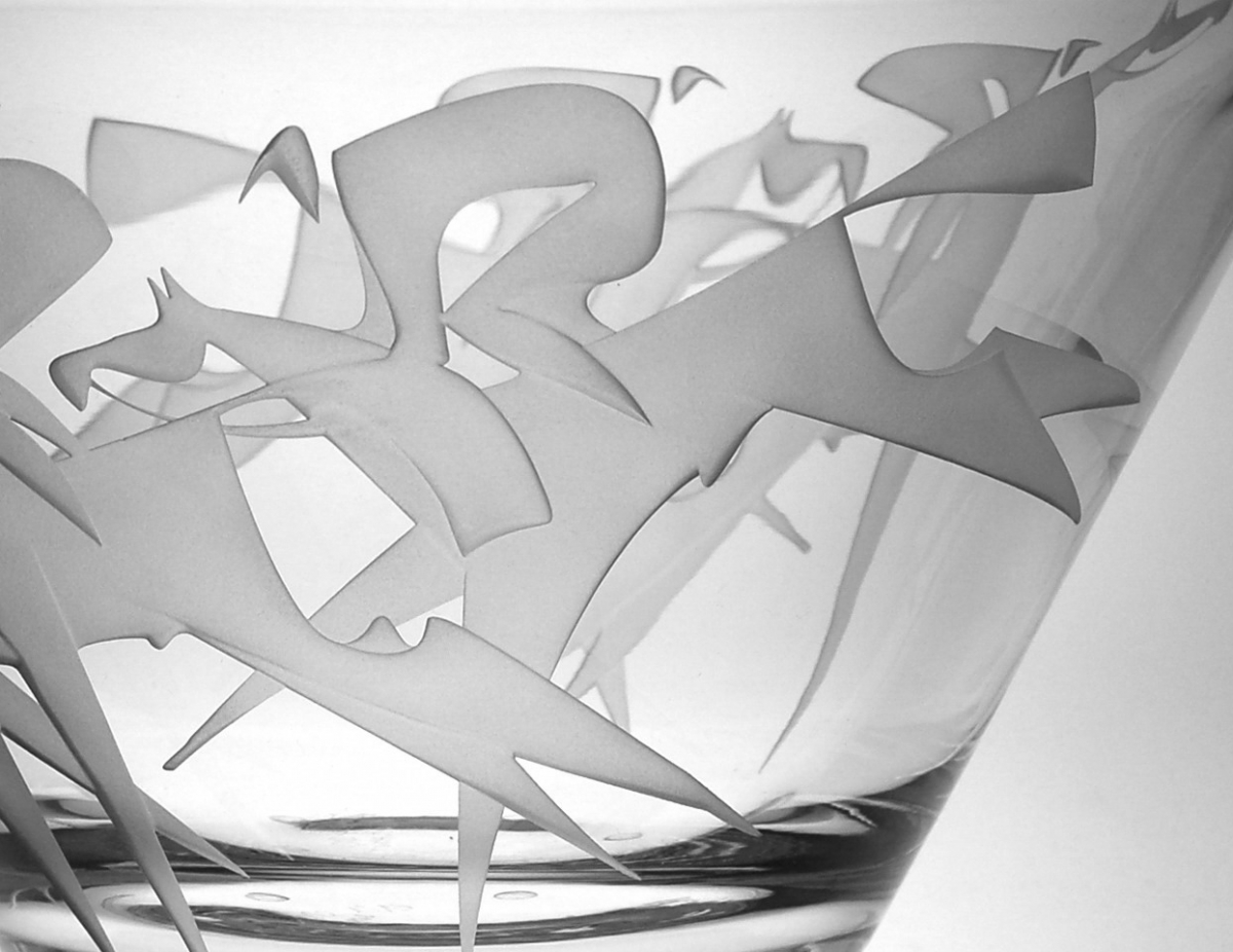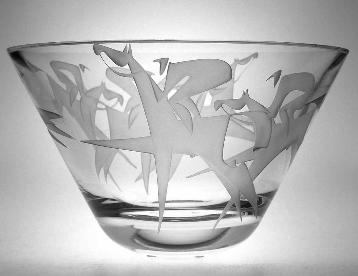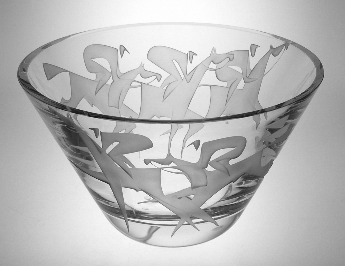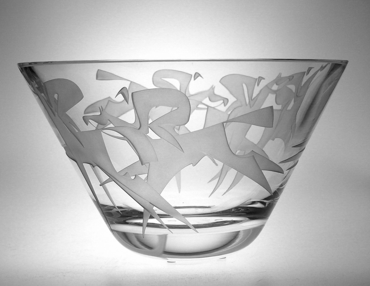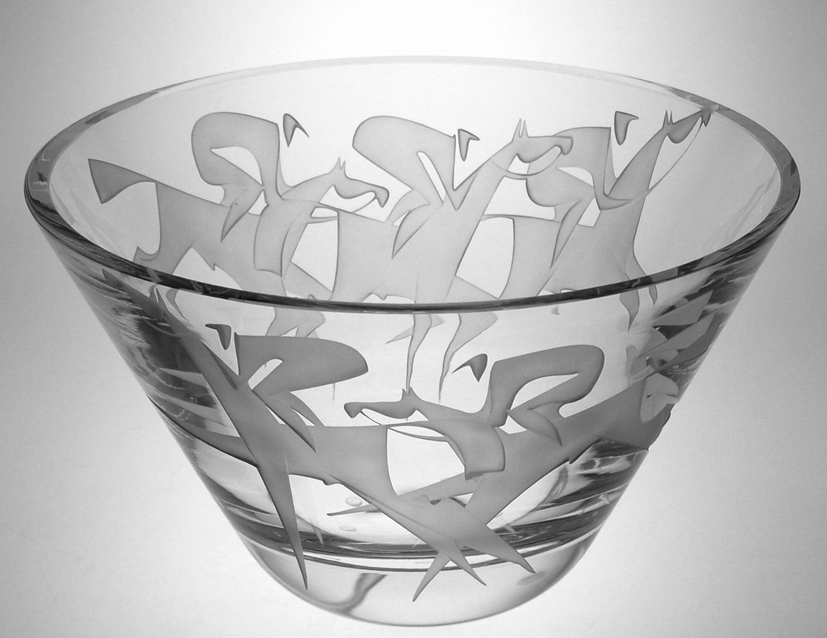 Bohemia clear crystal bowl. Decorated with sandblasted motiv of horsemen and horses. Bohemia crystalinte limited series.