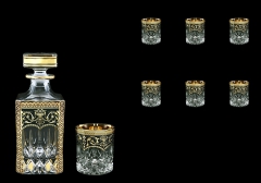 Selection of water, whisky, liqueur and wine sets in various sizes and shapes. Top quality Italian crystal decorated in Bohemia, Czech Republic. Available in black, white, ivory, blue and green colors.
