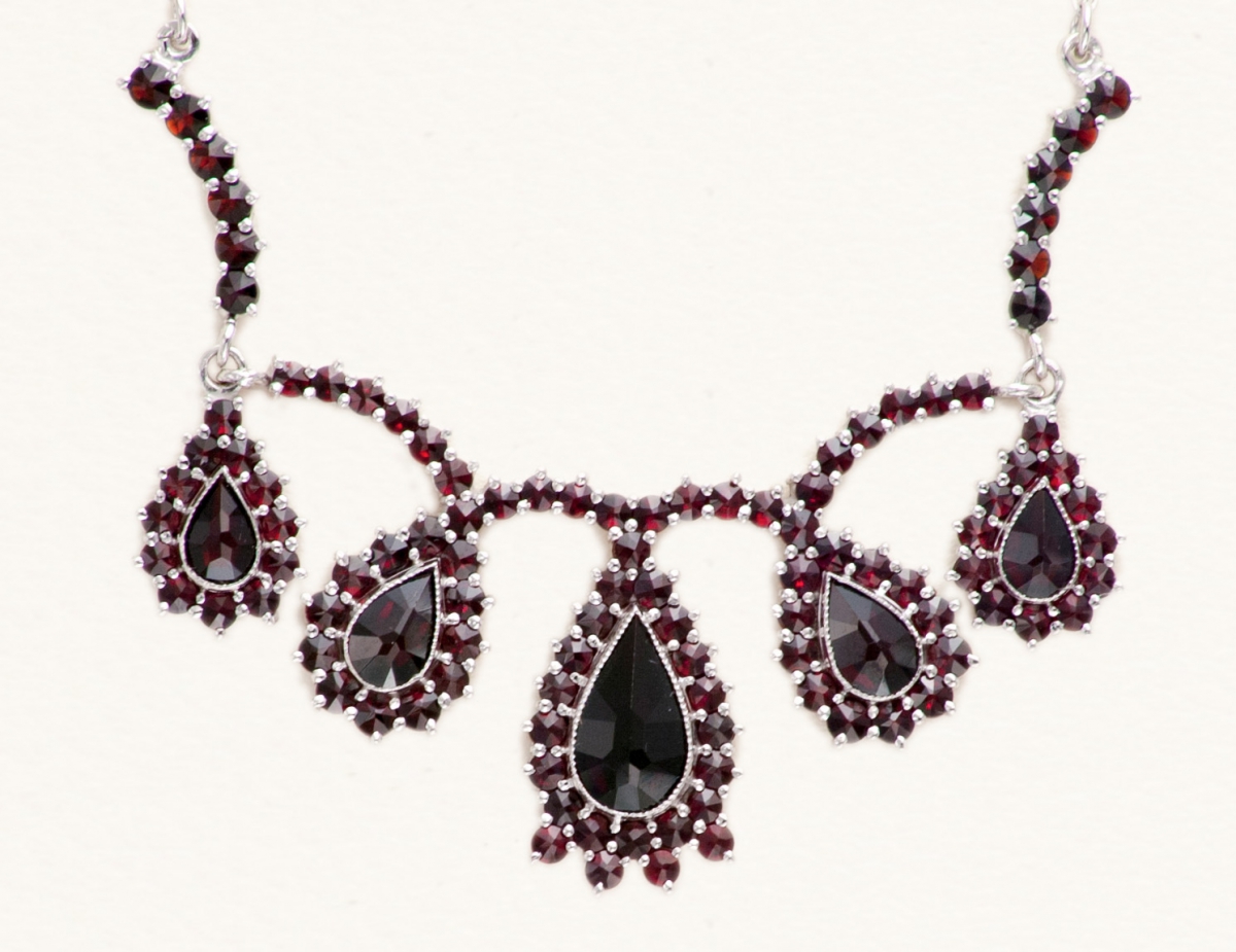 Beautiful Necklace made from original Czech Garnet and Rhodium - coated Silver. Also available in Gold - plated execution.