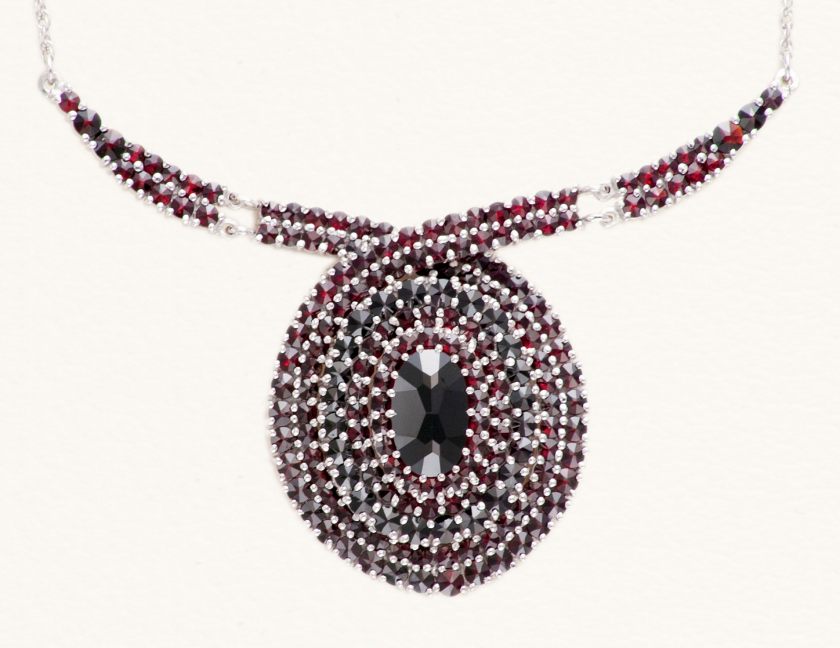 Beautiful Necklace made from original Czech Garnet and Rhodium - coated Silver. Also available in Gold - plated execution.