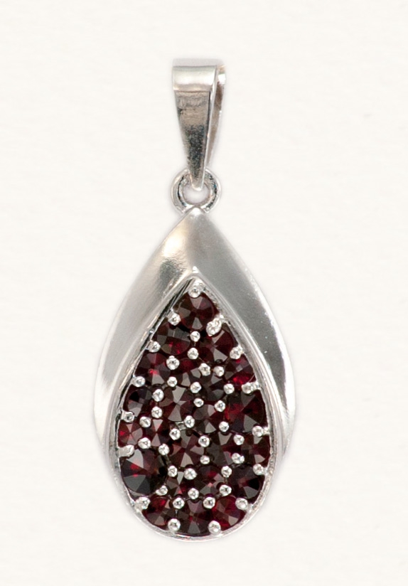Original Czech Garnet Pendant comes either in Silver or Gold-plated execution. Silver is further plated with invisible Rhodium, which protects Silver from scratches.