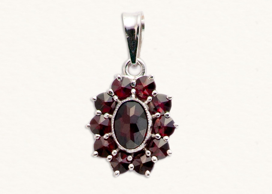 Original Czech Garnet Pendant comes either in Silver or Gold-plated execution. Silver is further plated with invisible Rhodium, which protects Silver from scratches.