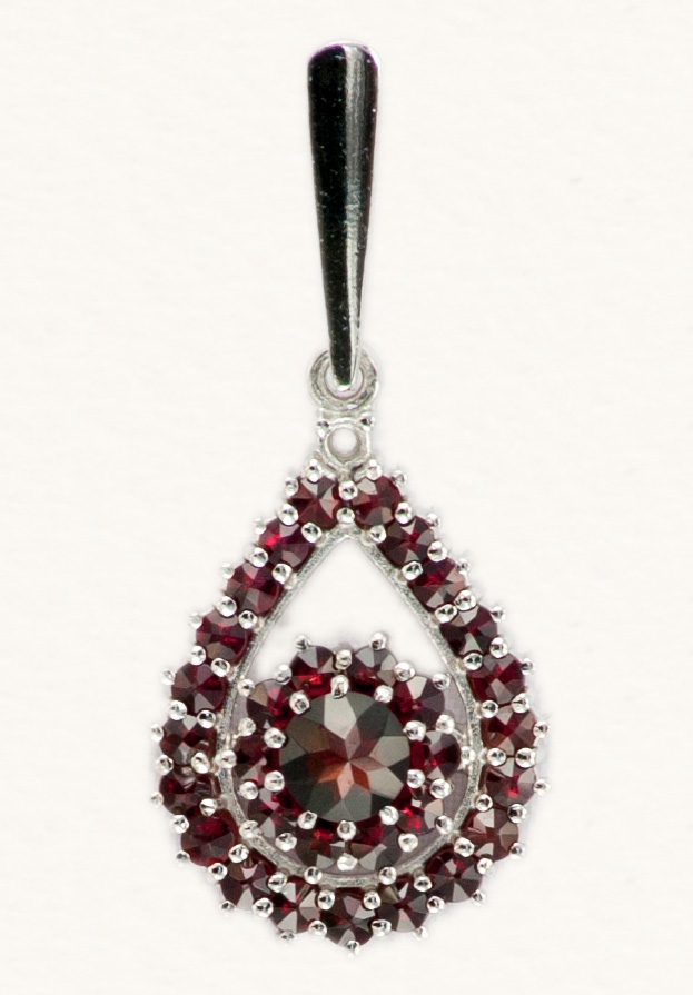 Original Czech Garnet Pendant comes either in Silver or Gold-plated execution. Silver is further plated with invisible Rhodium, which protects Silver from scratches.