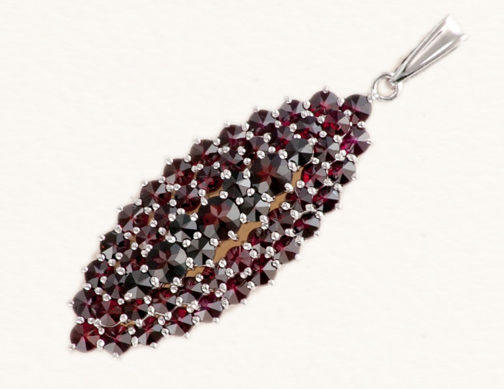 Original Czech Garnet Pendant comes either in Silver or Gold-plated execution. Silver is further plated with invisible Rhodium, which protects Silver from scratches.