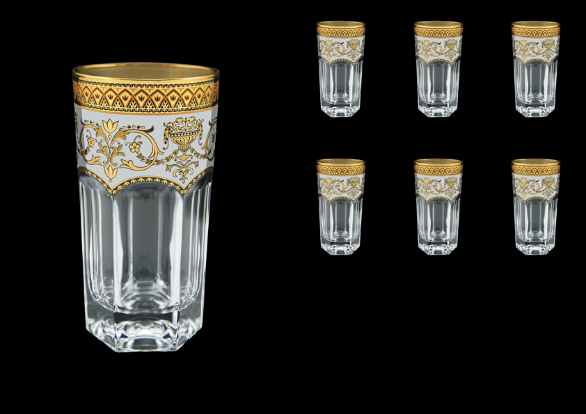Italian crystal decorated with gilding and white arabesque motifs. Decoration was made in Bohemia, Czech Republic.